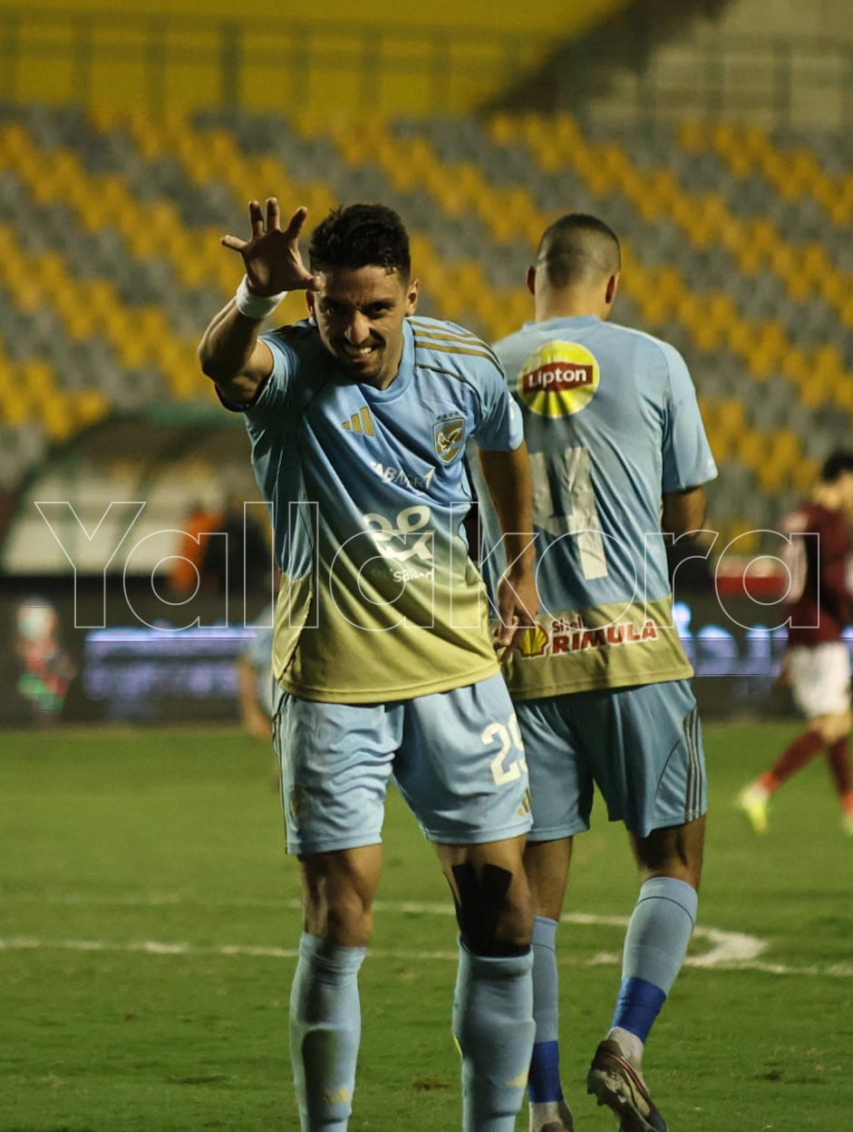 احتفال طاهر محمد طاهر بعد هدفه في شباك سيراميكا. ا أحمد مسعد