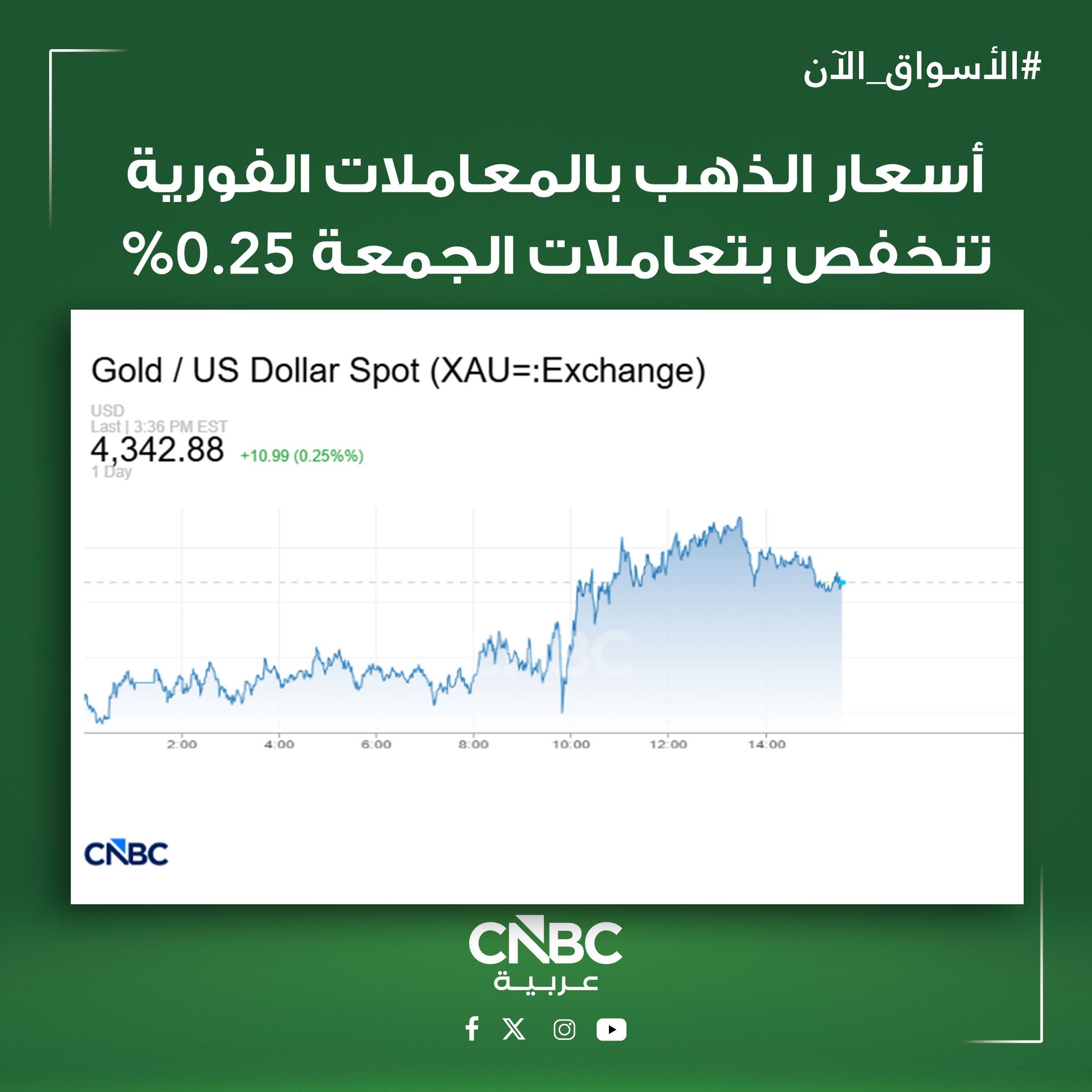 وصعد الذهب في المعاملات الفورية 0.1% إلى 4338.37 دولار للأونصة، لكنه سجل مكاسب أسبوعية بنسبة 0.9%. وارتفعت العقود الأميركية الآجلة للذهب 0. 1% إلى 4370.10 دولار.