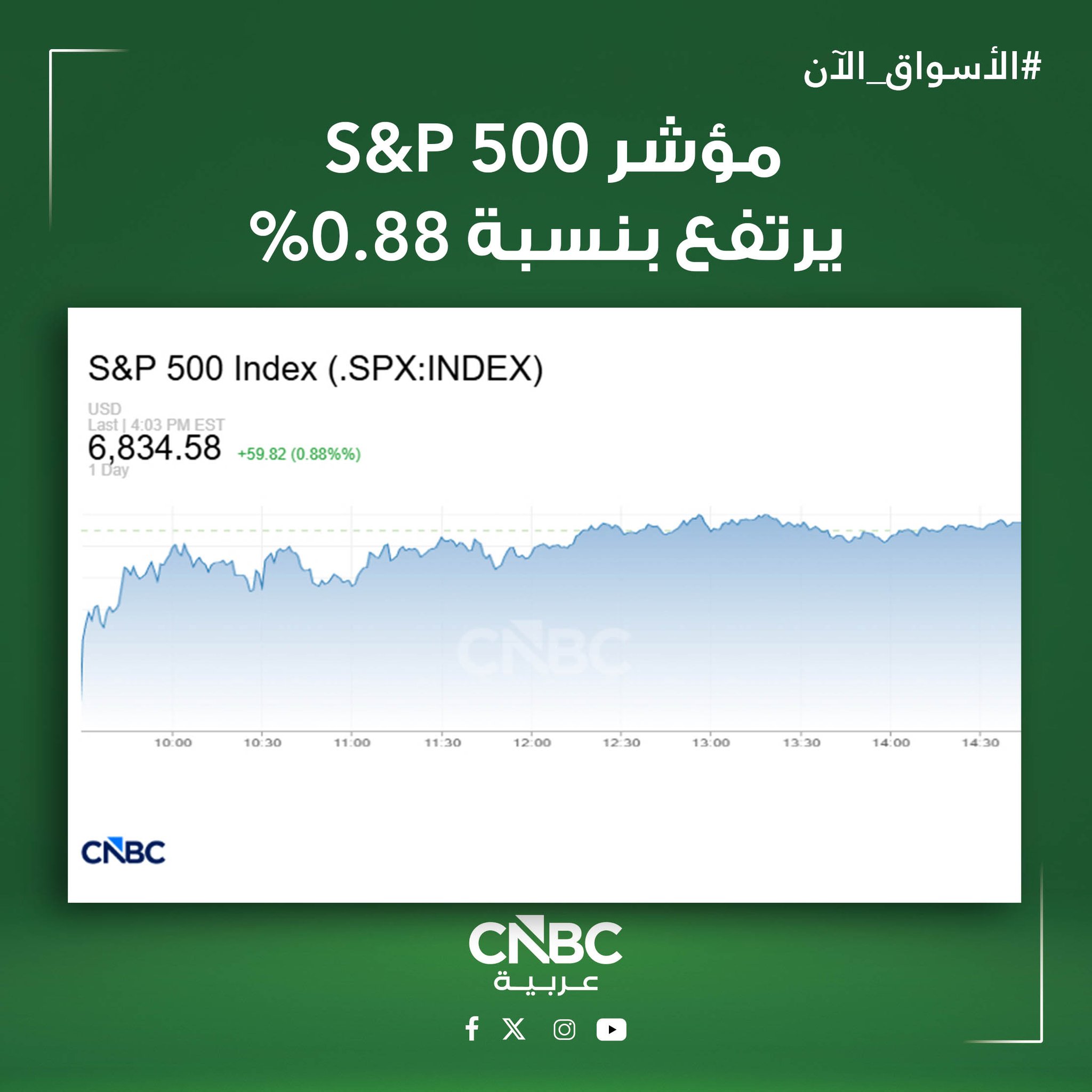 وصعد مؤشر ستاندرد آند بورز 500 بنسبة 0.9% ومسجلاً 6.834.58 نقطة عند الإغلاق.
