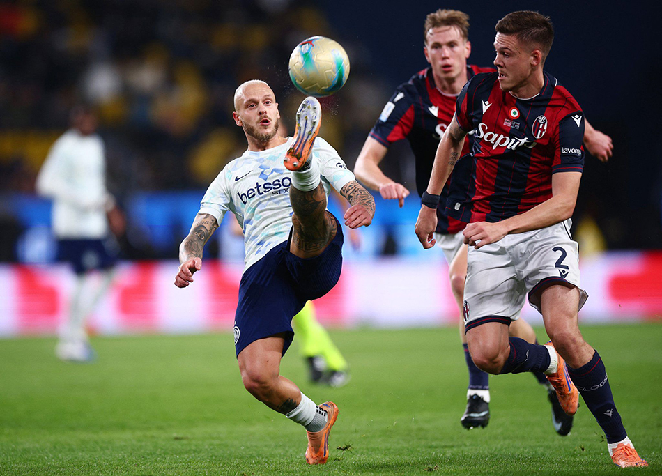 بلغ بولونيا نهائي كأس السوبر الإيطالي لاول مرة في تاريخه بعدما فاز على إنتر بركلات الترجيح 3-2 إثر التعادل في الوقت الأصلي 1-1 في اللقاء الذي جمعها مساء الجمعة في المملكة العربية السعودية.