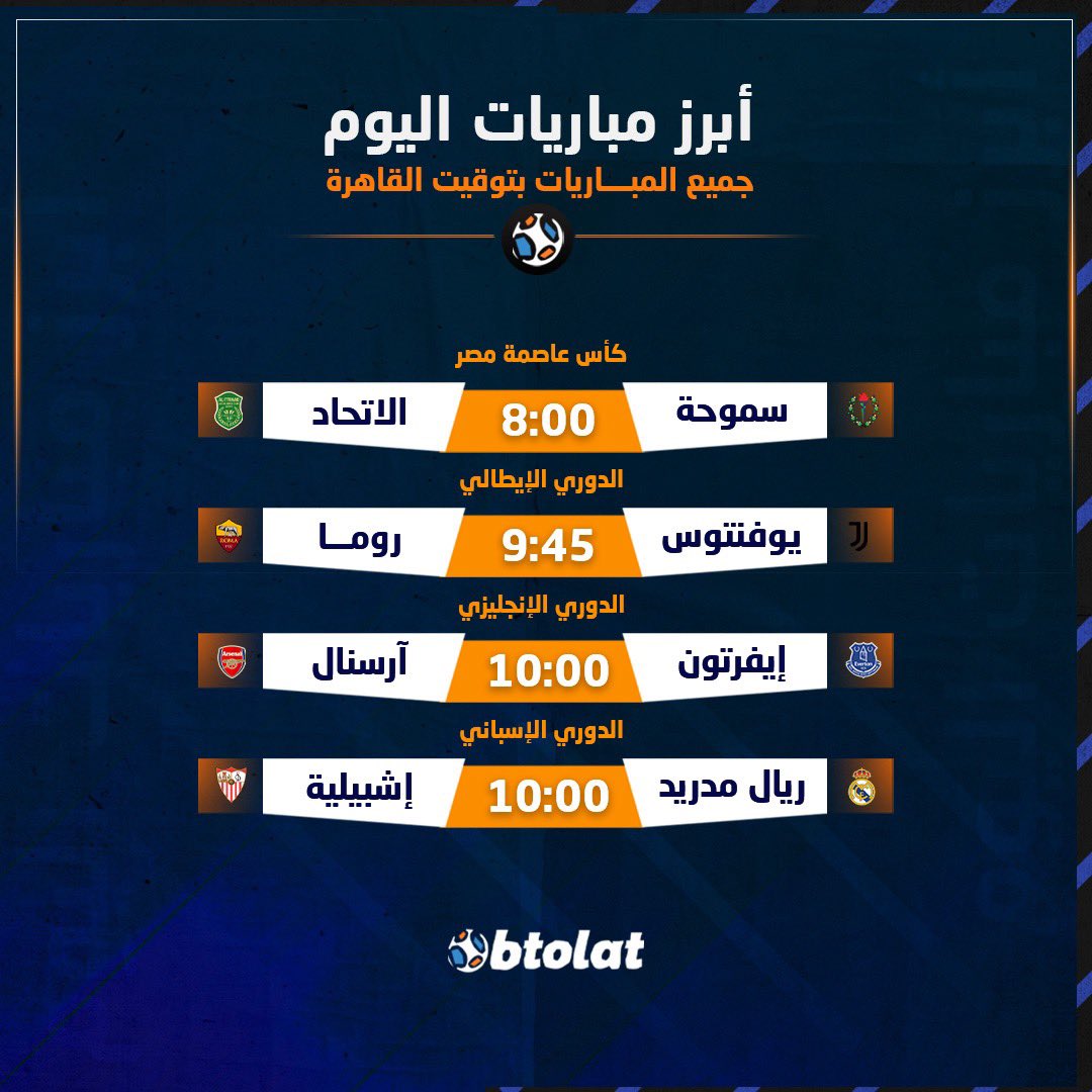 أبرز مباريات اليوم - الزمالك يواجه حرس الحدود في كأس عاصمة مصر - ليفربول والسيتي وآرسنال في مواجهات قوية بالبريميرليج - ريال مدريد في مواجهة نارية أمام إشبيلية بالليجا