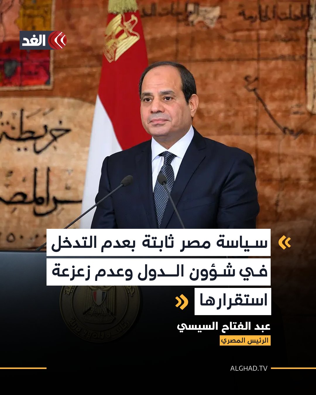 عبد الفتاح السيسي الرئيس المصري: نطالب بعدم المساس بحقوقنا في مياه النيل والتوصل إلى اتفاق بشأن سد النهضة. سياسة مصر ثابتة بعدم التدخل في شؤون الدول وعدم زعزعة استقرارها