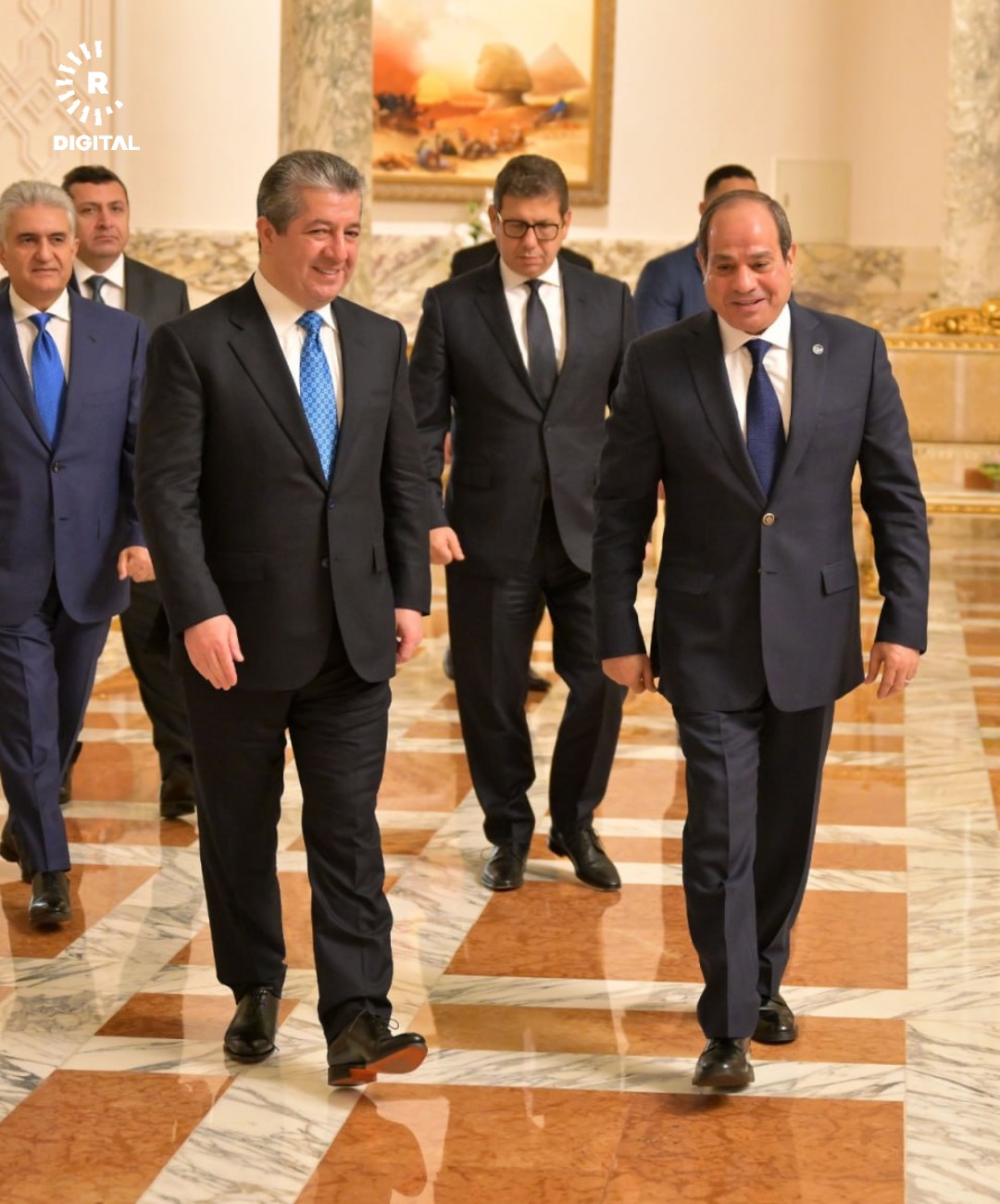 صور من استقبال الرئيس المصري عبد الفتاح السيسي لرئيس حكومة إقليم كوردستان مسرور بارزاني. أكد السيسي خلال اللقاء على دعم مصر الكامل والمستمر للعراق ولوحدة وسلامة أراضيه، ومساندته في مواجهة التحديات العديدة التي تمر بها المنطقة، مشيداً بمستوى التعاون القائم بين الأجهزة المصرية والعراقية في المجال الأمني، وبجهود الدولة العراقية وسلطات إقليم كوردستان الرامية إلى إحلال الاستقرار والسلام بالمنطقة