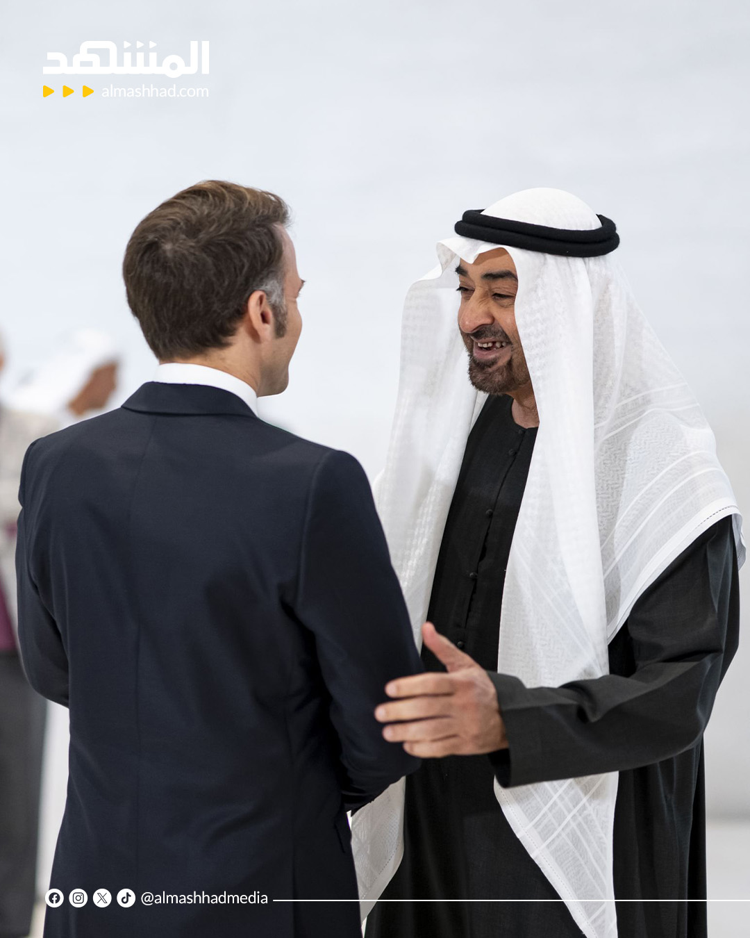 استقبل رئيس دولة الإمارات الشيخ محمد بن زايد آل نهيان، اليوم الأحد، الرئيس الفرنسي إيمانويل ماكرون الذي يقوم بزيارة عمل إلى الدولة، على ما أفادت وكالة الأنباء الإماراتية (وام).. ورحب رئيس الإمارات، خلال اللقاء الذي جرى في متحف زايد الوطني في أبوظبي، بالرئيس الفرنسي. وتبادل معه التهاني بمناسبة قرب حلول العام الجديد متمنيين للبلدين وشعبيهما دوام التقدم والازدهار