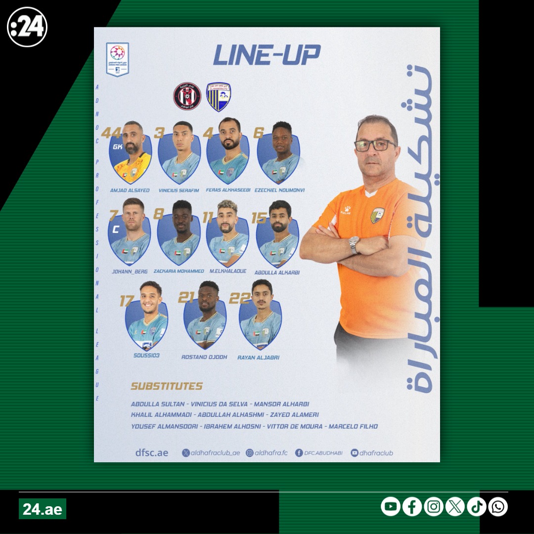 تشكيلتا الجزيرة الظفرة في #دوري_أدنوك_للمحترفين