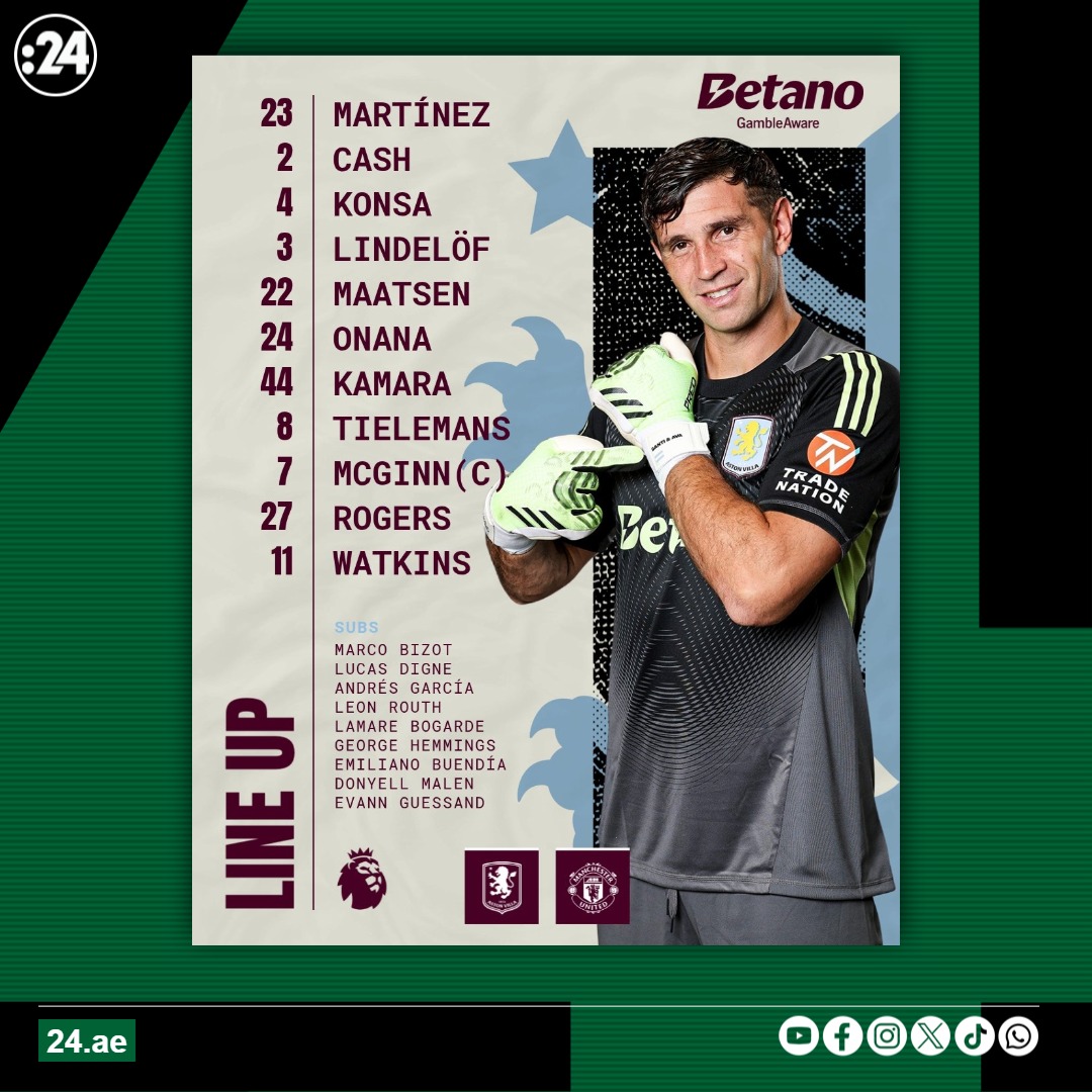 تشكيلتا مانشستر يونايتد أستون فيلا في #الدوري_الإنجليزي