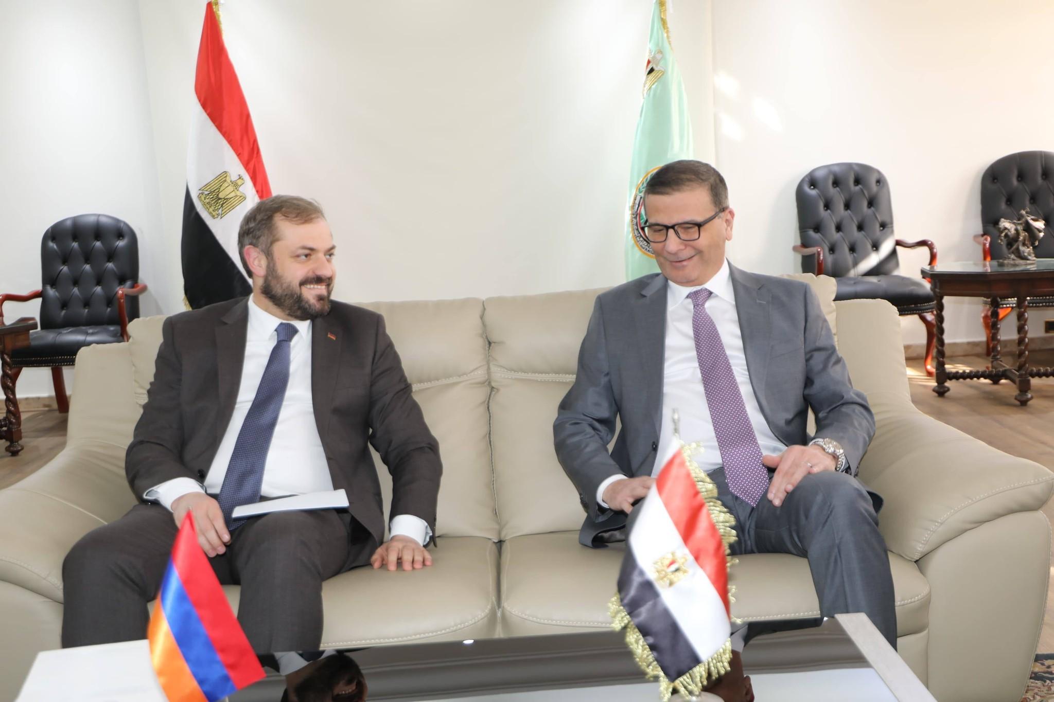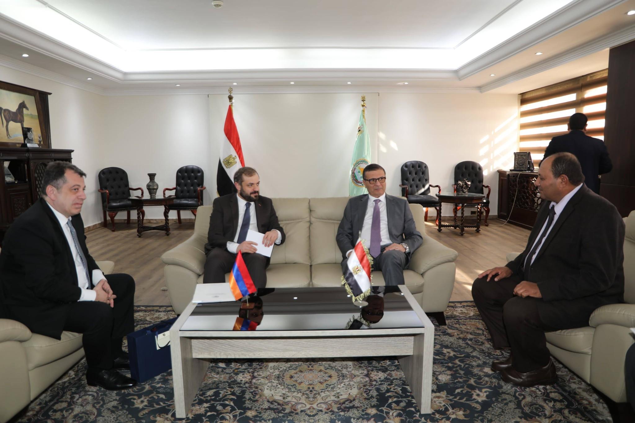 استقبل علاء فاروق، وزير الزراعة واستصلاح الأراضي، "كيفورك بابويان"، وزير الاقتصاد بجمهورية أرمينيا، والوفد المرافق له، لبحث سبل تعزيز التعاون الثنائي بين البلدين في المجالات الزراعية المختلفة، وذلك في إطار جهود الدولة المصرية في توسيع نطاق الشراكات الدولية.