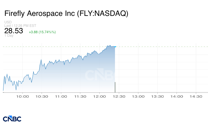 وحققت شركة فايرفلاي إيروسبيس Firefly Aerospace، المتخصصة في صناعة الصواريخ، والتي طرحت أسهمها للاكتتاب العام في أغسطس، ارتفاعاً بنسبة 13%.