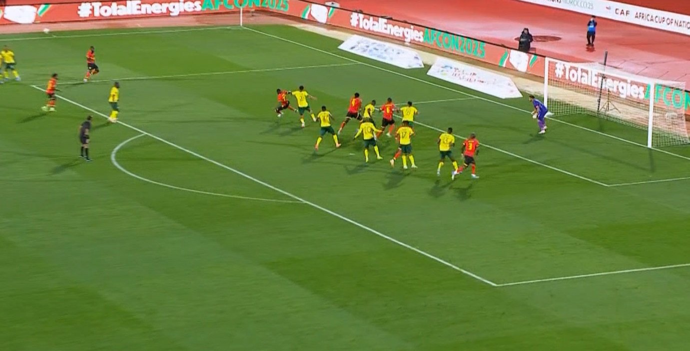 المباراة الأولى في مجموعة مصر على صفيح ساخن. لقطات من هدف التعادل لـ منتخب أنجولا في شباك منتخب جنوب إفريقيا