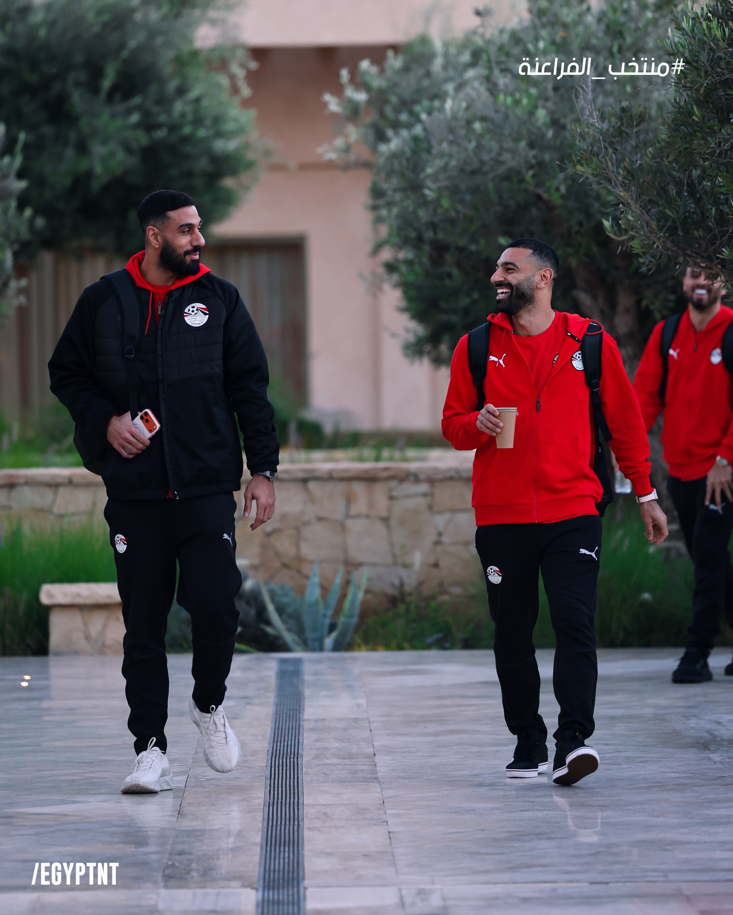 ويل لـ زيمبابوي من شر قد اقترب. نجوم منتخب مصر خلال عمليات الإحماء قبل انطلاق المباراة