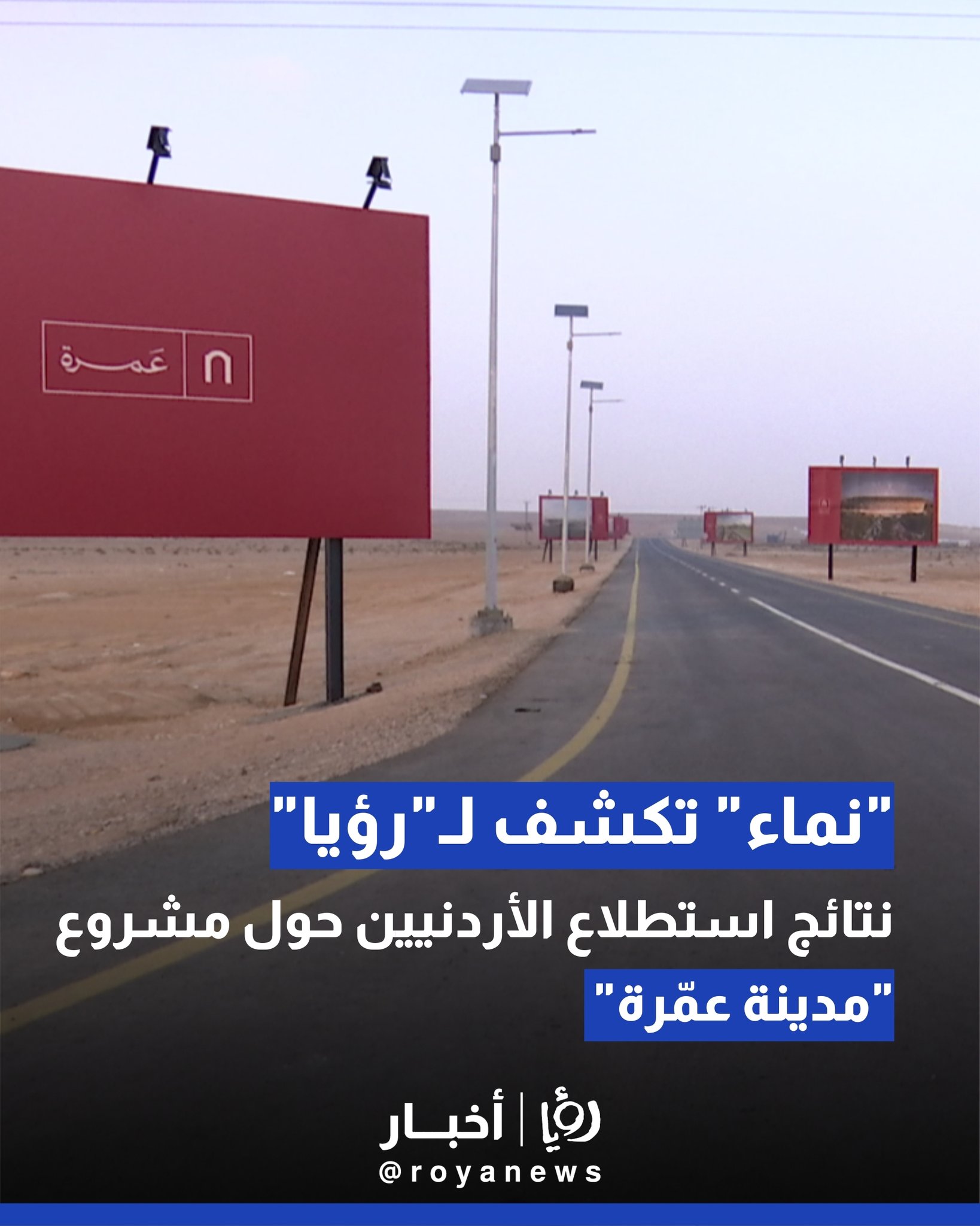 استعرض نائب مدير عام مركز "نماء"، محمد أبو دلهوم، خلال حديثه في برنامج "أخبار السابعة" على قناة "رؤيا"، نتائج استطلاع الرأي العام الذي أجراه المركز حول مشروع المدينة الجديدة مدينة عمرة، مسلطا الضوء على دلالات الأرقام وتوجهات الشارع الأردني حيال هذا المشروع الوطني الضخم.