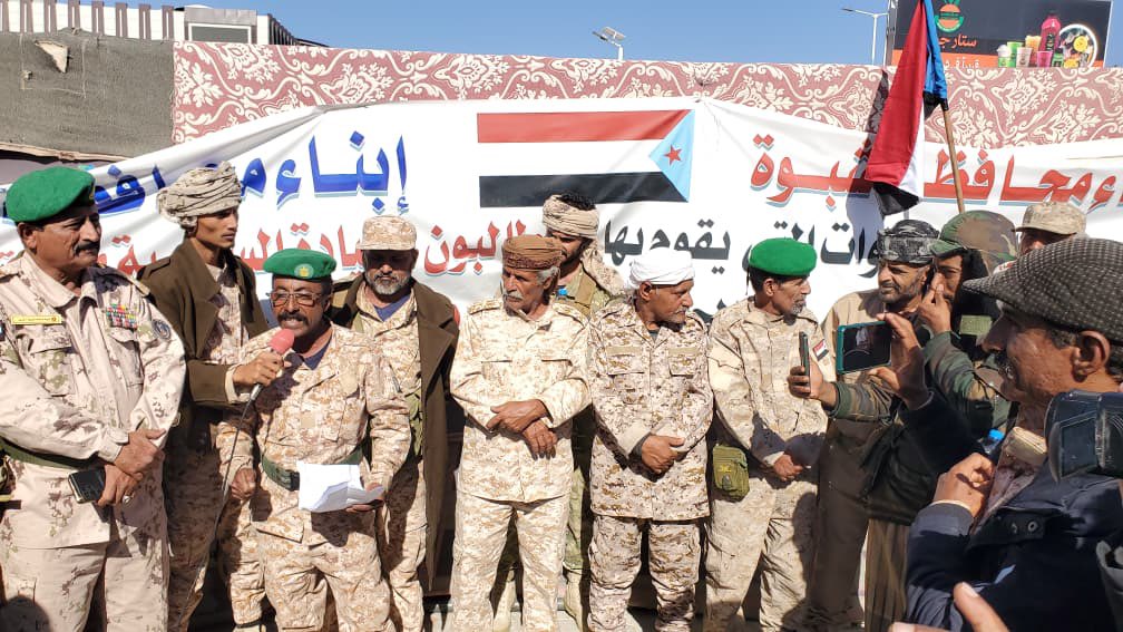 مخيم الاعتصام المفتوح في عتق بـ شبوة يستقبل وفودًا من القيادات العسكرية والأمنية في المحافظة #استعادة_دوله_الجنوب