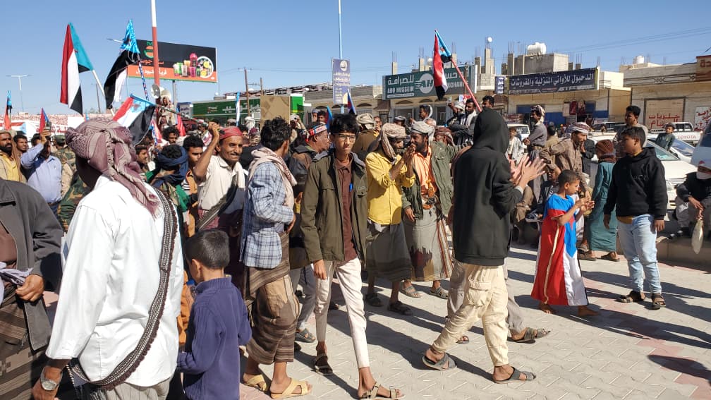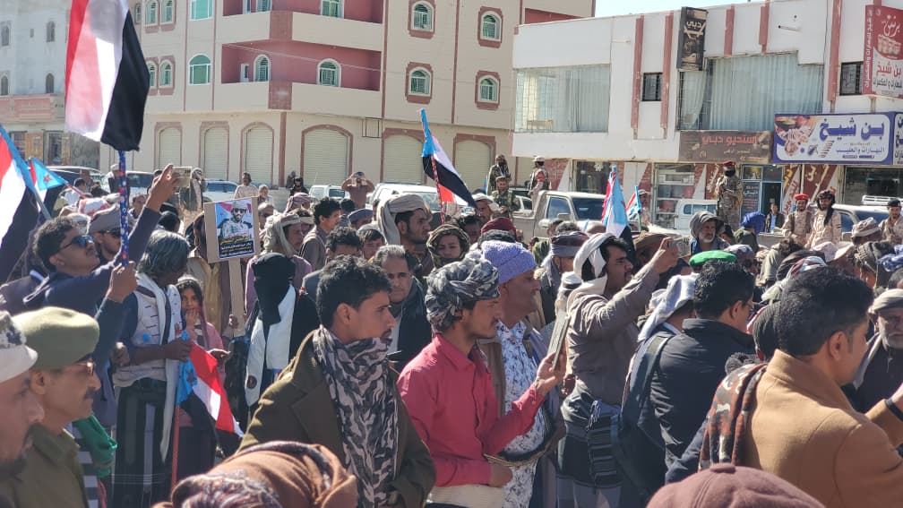 حشود شعبية كبيرة من أبناء مديرية عتق يتوافدون إلى ساحة الاعتصام المفتوح لأبناء شبوة في مدينة عتق #استعادة_دوله_الجنوب