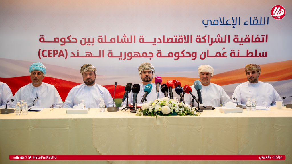 معالي قيس اليوسف، وزير التجارة والصناعة وترويج الاستثمار: "نحن هنا كلنا فريق عُماني، أنا أتمنى تكون هناك رسائل إيجابية كيف نستفيد من الاتفاقية؛ هل الاتفاقية قابلة للتحسين؟ نعم كل شيء قابل للتحسين". اللقاء الإعلامي حول اتفاقية الشراكة الاقتصادية الشاملة بين حكومة سلطنة عُمان وحكومة جمهورية الهند. Tejarah_om