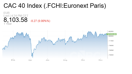 بينما لم يسجل مؤشر كاك الفرنسي أي تغير ليغلق عند 8,103.58 نقطة.