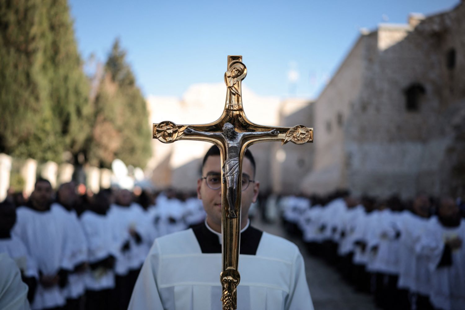 ملخص تجمّع مئات المصلين لحضور قداس في كنيسة المهد في بيت لحم ليل أمس الأربعاء في أول احتفال تقيمه المدينة الفلسطينية منذ توقف حرب غزة.