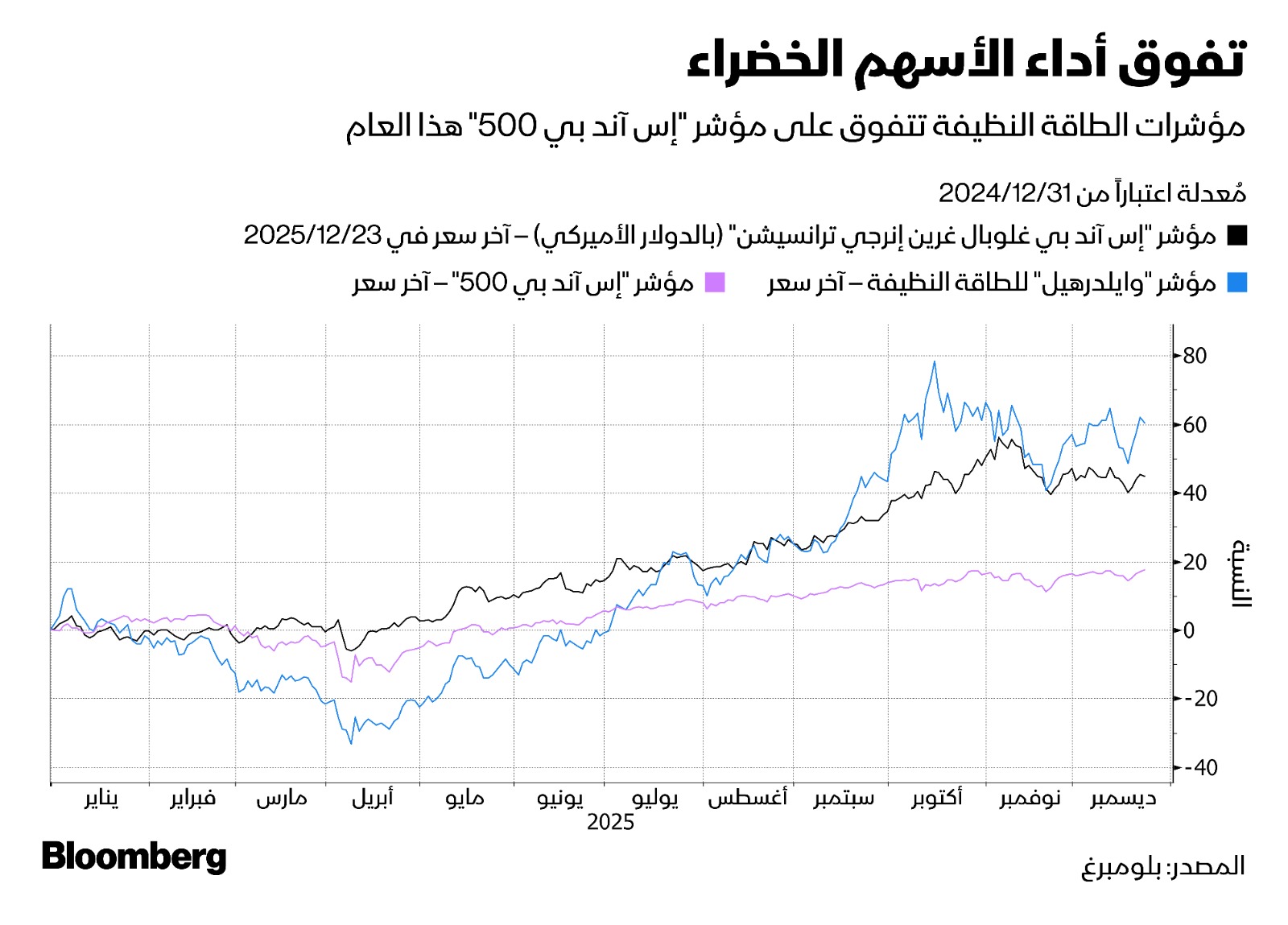 بلغ إجمالي إصدارات السندات والقروض الخضراء عالمياً مستوى قياسي قدره 947 مليار دولار حتى الآن هذا العام، وفق بيانات جمعتها "بلومبرغ إنتليجنس". ويأتي ذلك في وقت تتجه فيه مؤشرات أسهم الطاقة المتجددة لتحقيق أول مكاسب سنوية لها منذ عام 2020، متفوّقةً بفارقٍ كبير على مؤشر "إس آند بي 500"، بينما تواصل أسهم شركات تكنولوجيا شبكات الكهرباء جذب اهتمام المستثمرين.