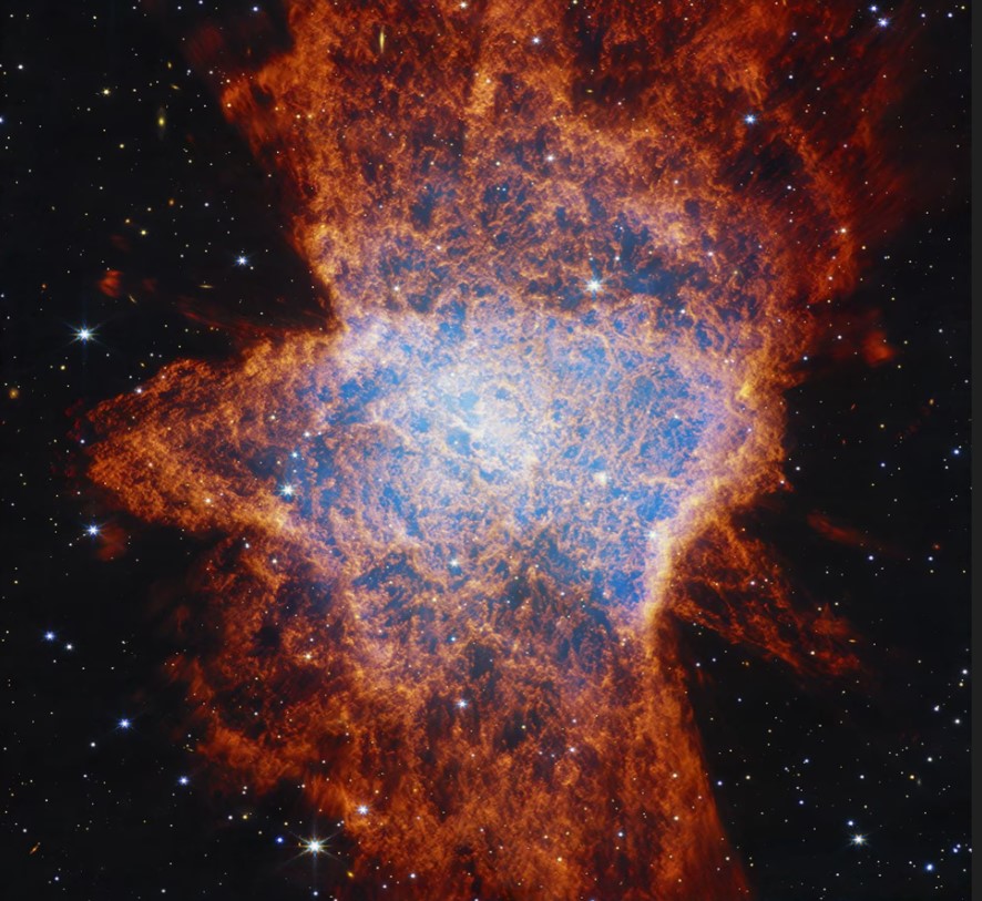 التقط تلسكوب جيمس ويب الفضائي صورة مذهلة لـ NGC 6537، المعروف باسم سديم العنكبوت الأحمر، مظهراً تفاصيل لم يسبق لها مثيل وخلفية غنية بآلاف النجوم. تتشكل السدم الكوكبية مثل هذا السديم عندما تصل النجوم العادية، بما في ذلك الشمس، إلى نهاية دورة حياتها. وتعد هذه المرحلة من حياة النجم قصيرة الزوال لكنها مذهلة بصريًا إذ لا تدوم إلا لبضعة أيام..