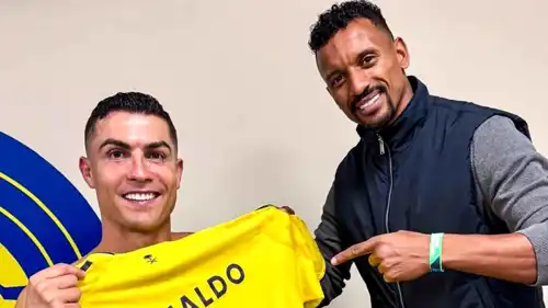 بعد حضوره مباراة النصر والأخدود.. كريستيانو رونالدو يهدي ناني قميصه (صور)