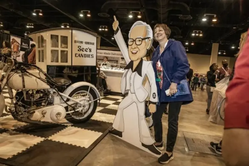 بات «بازار بيركشاير للصفقات» علامة مسجلة للاجتماع، بمساحة تقارب 20 ألف قدم مربعة تضم نحو 50 ألف قطعة من منتجات شركات المجموعة في 2025. لم يكن بافيت متحدثاً فقط، بل نجماً دعائياً يتنقّل بين الأكشاك ويلتقط الصور مع التمائم والمنتجات، مبتسماً كأنها جزء من فلسفته الاستثمارية.
