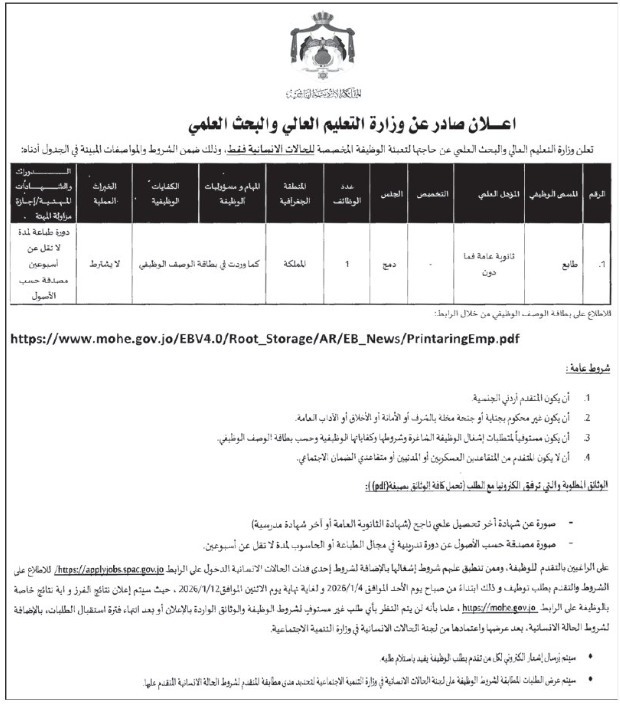 الوكيل الإخباري- اعلنت دوائر حكومية، اليوم الاثنين عن حاجتها لتعبئة وظائف شاغرة.