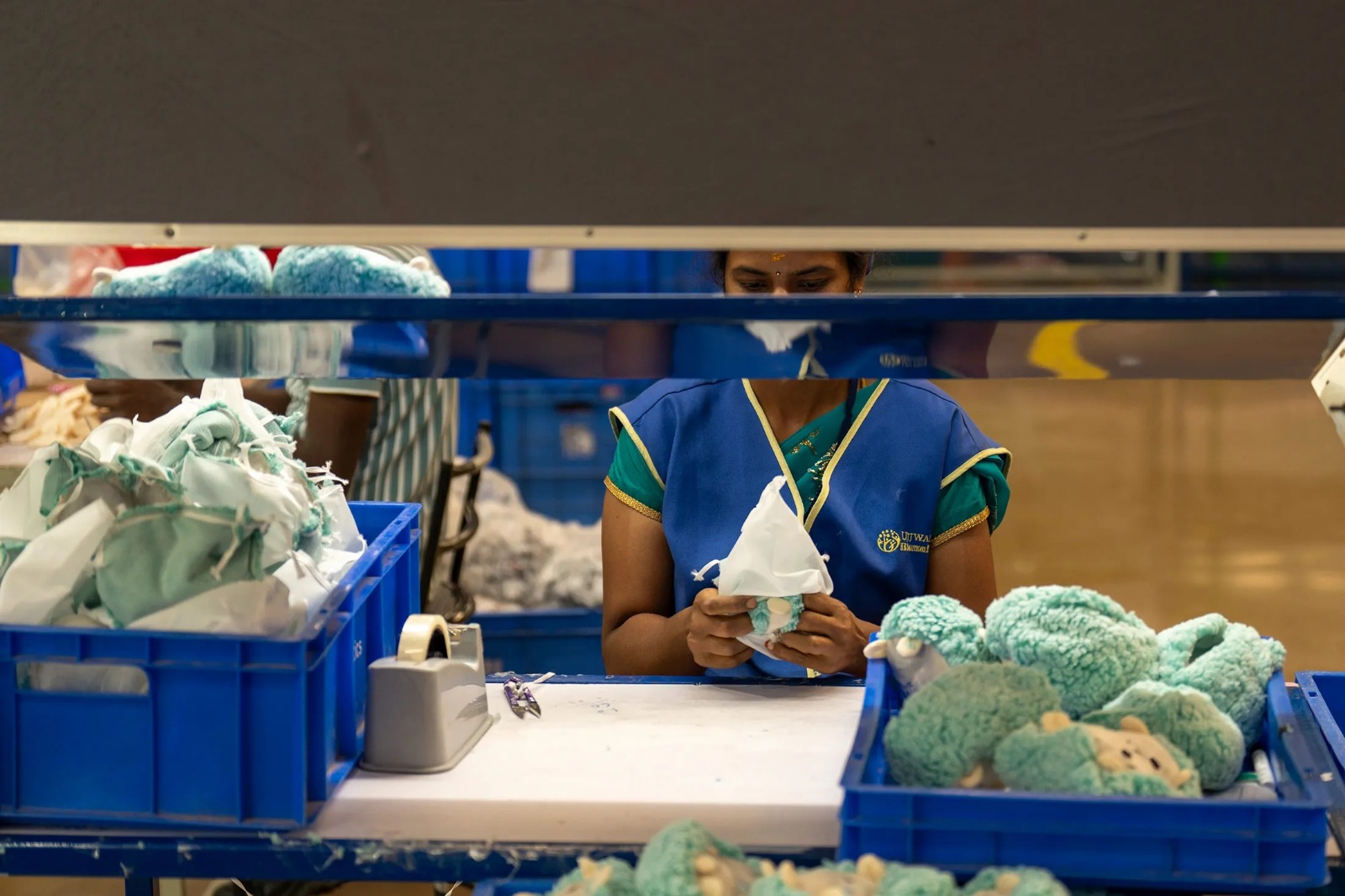 تجلس عشرات النساء، يرتدين أثواباً ملونة صفوفاً، يخطن خيوطاً من الصوف الأصفر بطول 90 سم يدوياً على رؤوس ما سيصبح دمى إلسا المصنوعة بالكامل من القماش، من فيلم ديزني "فروزن". وتشذّب بعضهن الشعر وتمشطه وتضفره يدوياً بدقة متناهية على شكل ذيل سمكة معقد. إنها عملية شاقة ومضنية، تستغرق حوالي 40 دقيقة لشعر الدمية فقط.