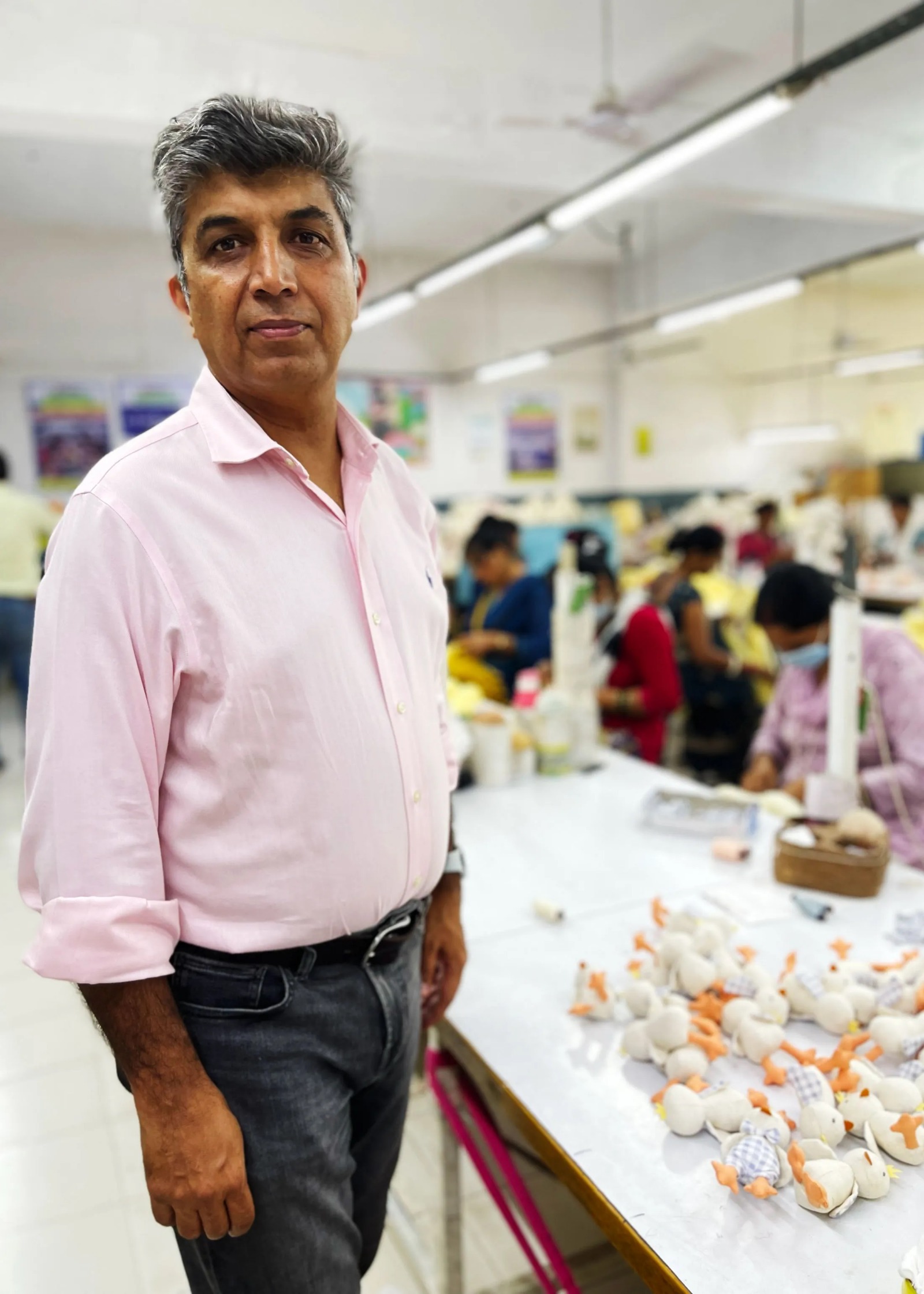 ورقة ترمب الهندية على بُعد ثلاث ساعات طيران شمالاً، قرب نيودلهي، يسهل إدراك عدم منطقية ادعاء ترمب بأن الرسوم الجمركية ستعيد وظائف التصنيع. يظهر أميتاب خارباندا، مالك مصنع ألعاب صن لورد (Sunlord)، بفخر ما يسميه "ورقة ترمب" في يد شركته، وهو قسم الأعمال اليدوية، الذي لا يمكن تكراره في الولايات المتحدة.