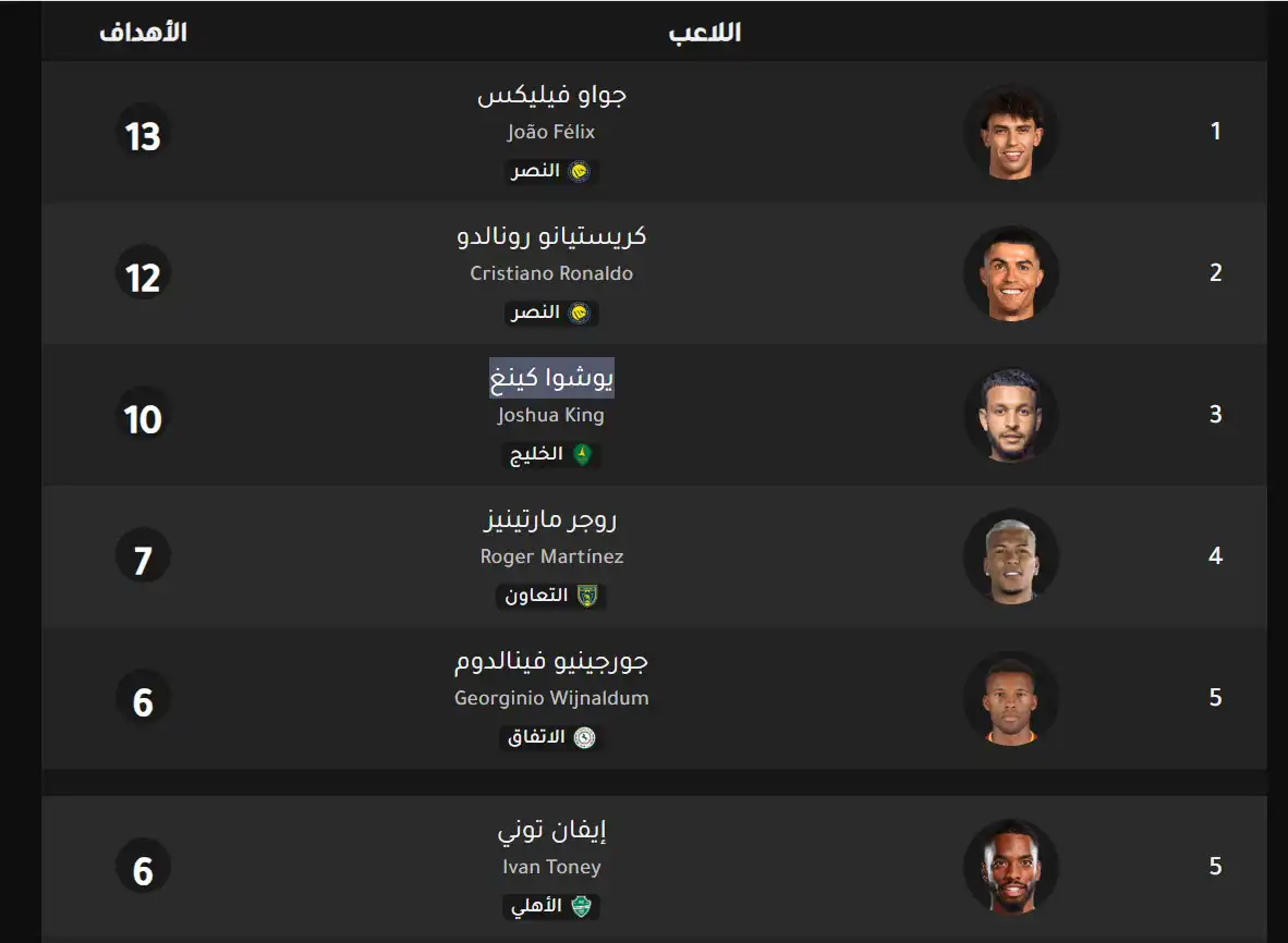 ورفع فيليكس رصيده إلى 13 هدفا في صدارة هدافي دوري.....