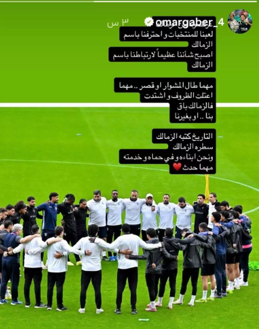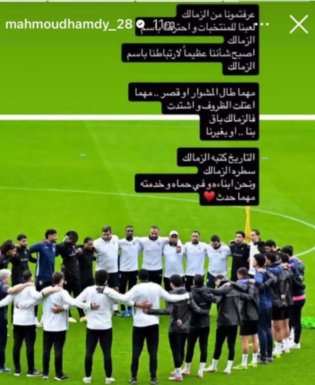 وجاءت مضمون الرسالة كالتالي: "عرفتمونا من الزمالك، لعبنا للمنتخبات واحترفنا باسم الزمالك، أصبح شأننا عظيما لارتباطنا باسم الزمالك، ومهما طال المشوار أو قصر، مهما.....