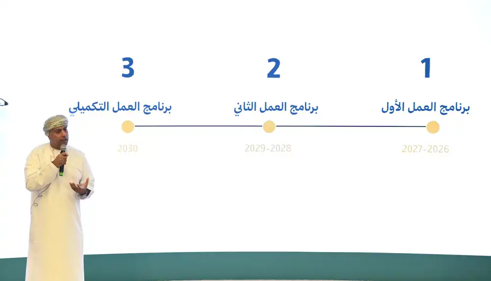خلال عارض وكيل وزارة الاقتصاد العُماني ناصر بن راشد المعولي الخطة الخمسية الحادية عشرة للتنمية (2026-2030) يوم 1 يناير 2026.