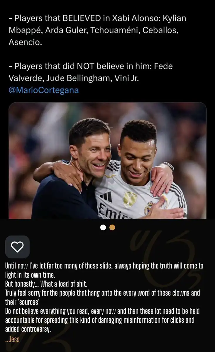 وتفاعل بيلينغهام مع الأنباء التي أفادت حول خلاف بين تشابي ألونسو وبعض نجوم الفريق وعلى رأسهم اللاعب الإنجليزي.
