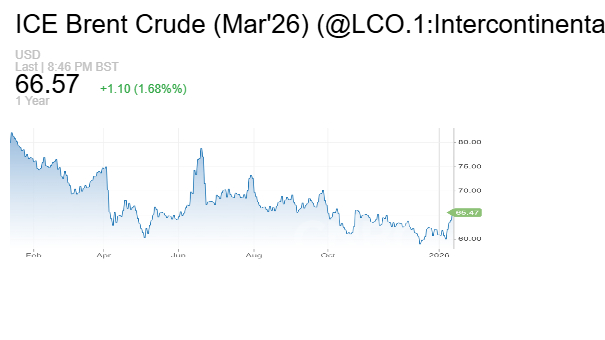 كما ارتفعت العقود الآجلة لخام برنت 1. 05 دولار أو 1. 6% لتبلغ عند التسوية 66. 52 دولار للبرميل.