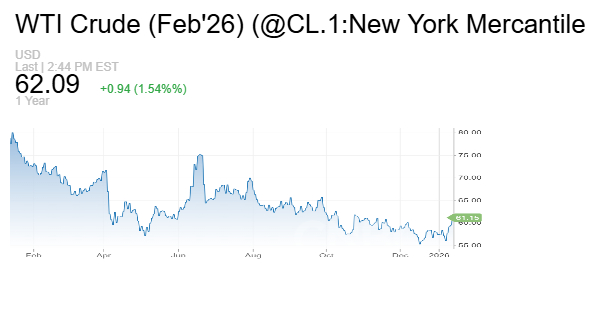 ارتفعت العقود الآجلة للخام الأميركي 87 سنتا أو 1. 42% لتبلغ عند التسوية 62. 02 دولار للبرميل.