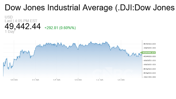 - مؤشر داو جونز الصناعي أضاف 263 نقطة أو ما يعادل 0.5%، مدعوماً بمكاسب غولدمان ساكس وإنفيديا.