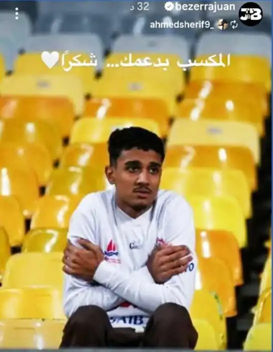 وشوهد محمد خميس وحيداً في مدرجات برج العرب لدعم الزمالك خلال المباراة رغم برودة الطقس.