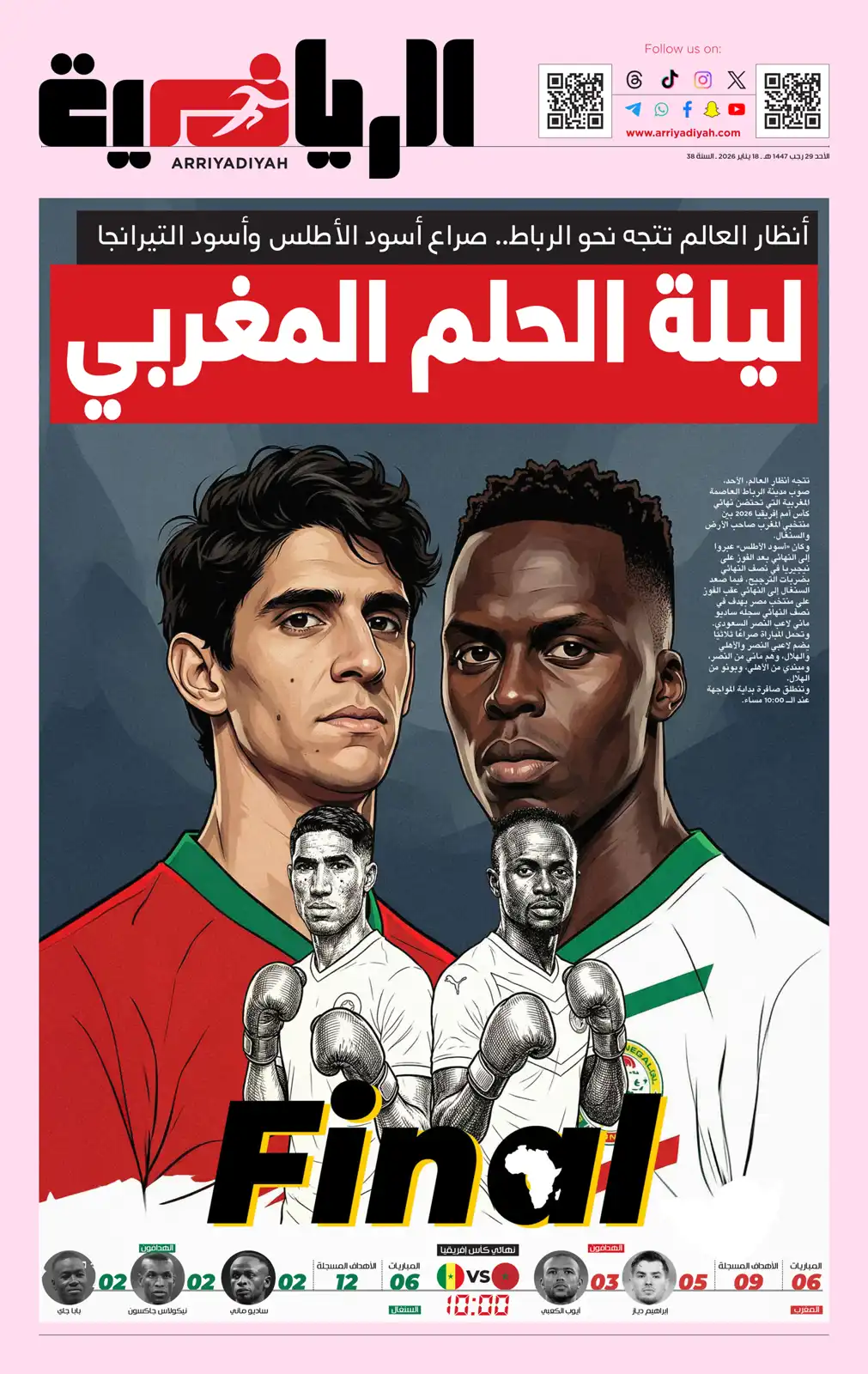 كما حظي نهائي كأس الأمم الإفريقية بين منتخبي المغرب والسنغال باهتمام واسع، إلى جانب فوز النصر على الشباب في الدوري السعودي، ومواجهة ريال سوسيداد وبرشلونة في الليغا.