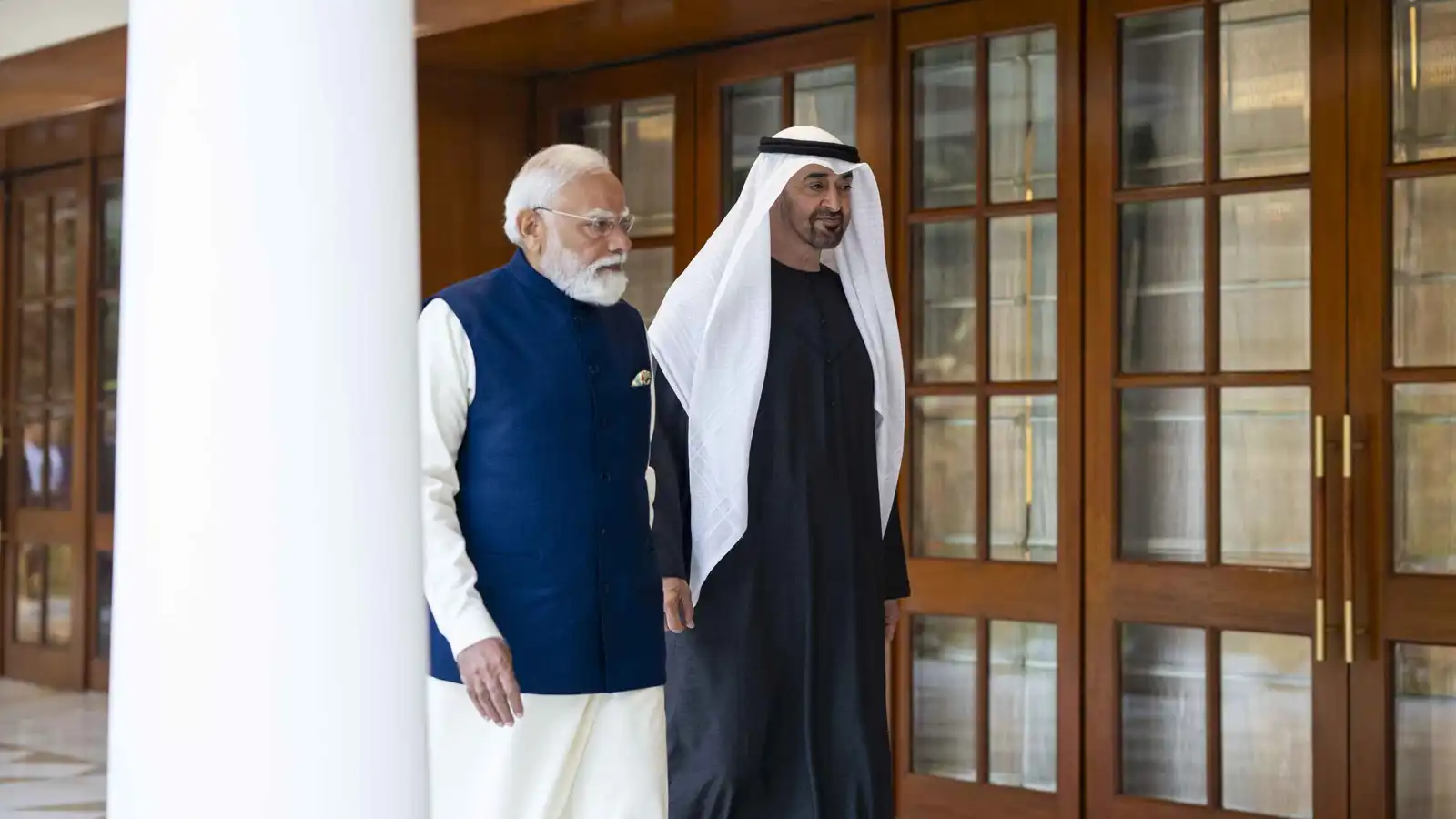 خلال لقاء رئيس الإمارات الشيخ محمد بن زايد آل نهيان ورئيس الوزراء الهندي ناريندرا مودي في نيودلهي يوم 19 يناير 2026.
