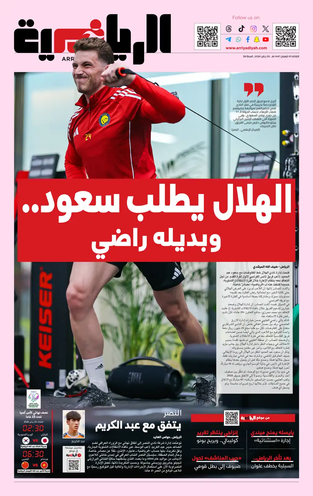 كما اهتمت بقرعة ربع نهائي كأس ملك إسبانيا وكتبت: "ألباسيتي بعد ريال مدريد ..برشلونة".
