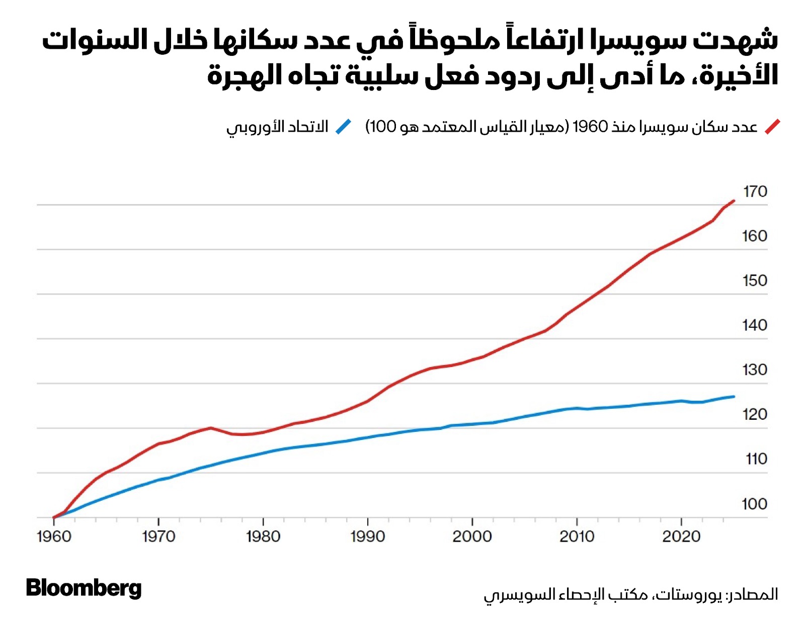 لكن في سويسرا، لا يقتصر النقاش على اللاجئين أو العمال ذوي المهارات المتدنية، بل هناك اقتراحٌ لتحديد الحد الأقصى لعدد السكان بعشرة ملايين نسمة، ويُرجح أن يُطرح للتصويت الشعبي هذا العام.