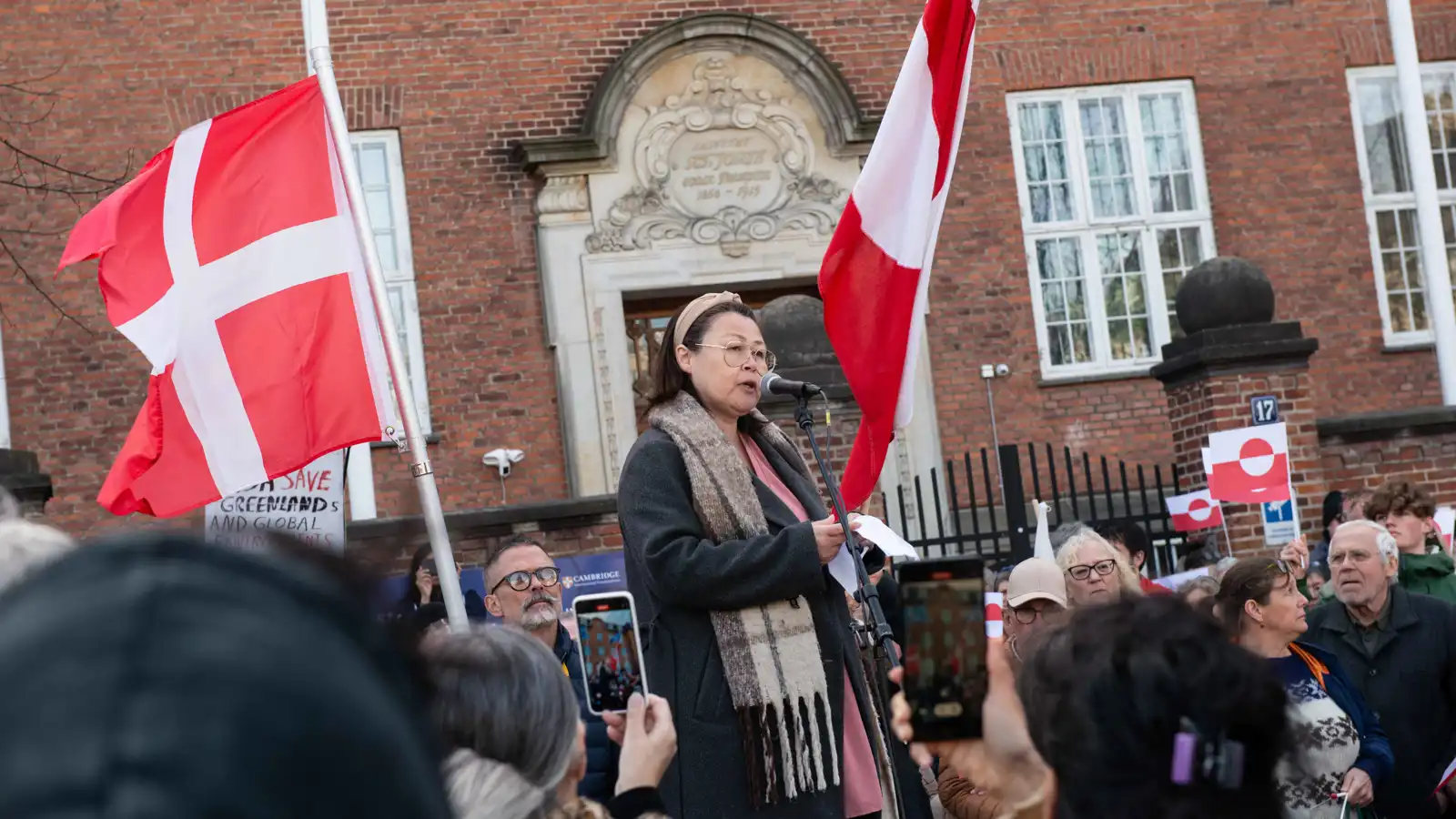 مظاهرة أمام السفارة الأميركية لدعم غرينلاند، في كوبنهاغن، الدنمارك، يوم 29 مارس 2025