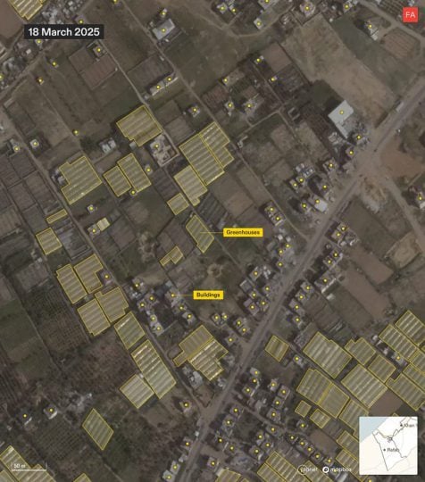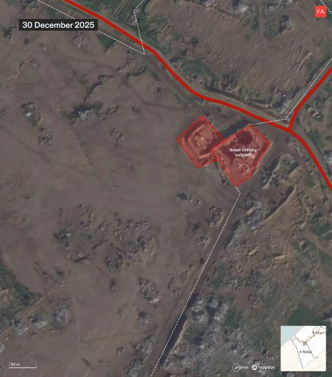 كشفت صور أقمار صناعية حلّلها فريق Forensic Architecture وفريق من منصة دروب سايت أن إسرائيل تقوم بتجريف مساحة استراتيجية من مدينة رفح جنوب قطاع غزة، وتسوية الأرض وضغطها وإزالة الأنقاض، في نمط يوحي بالتحضير لبناء بنية تحتية سكنية جديدة. وتشير النتائج إلى أن هذه الأعمال قد تُستخدم لإسكان الفلسطينيين وحصرهم داخل منطقة تخضع لسيطرة عسكرية إسرائيلية كاملة.