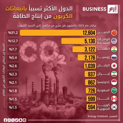 الدول الأكثر تسبباً بانبعاثات الكربون من إنتاج الطاقة