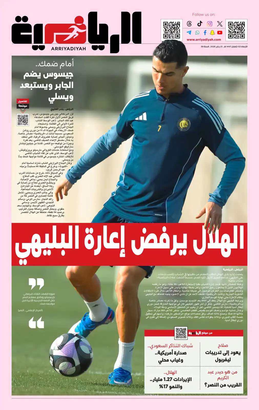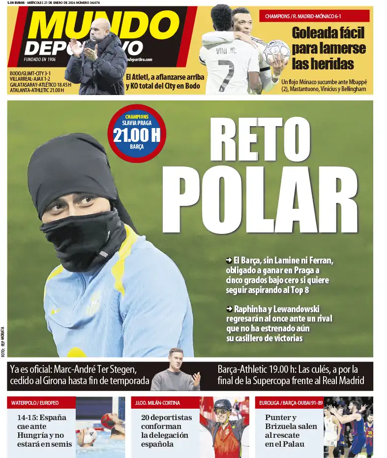 كما تطرقت إلى مواجهة برشلونة أمام سلافيا براغ، مشيرة إلى غياب لامين يامال، تحت عنوان: "اختبار براغ مع غياب لامين يامال".