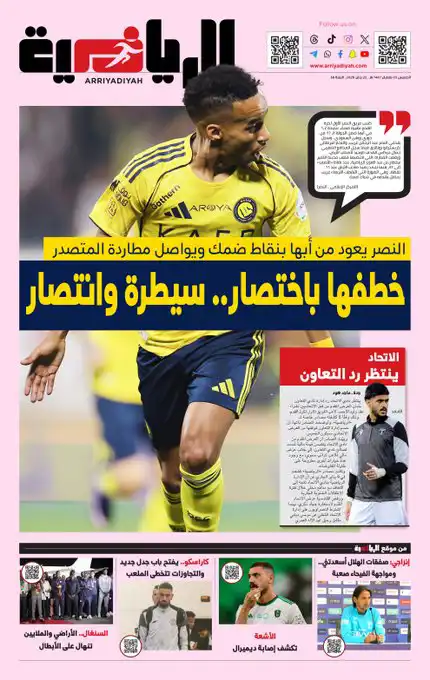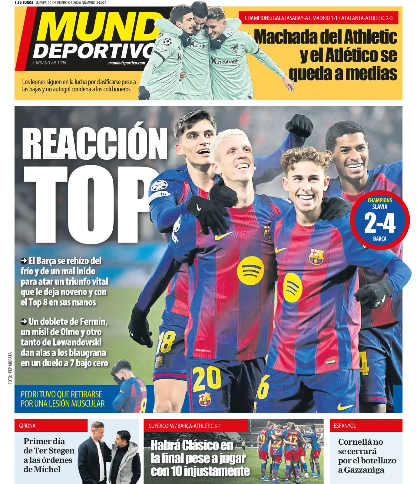 كما اهتمت بفوز برشلونة على سلافيا براغ بنتيجة 4-2 في دوري أبطال أوروبا، وعلّقت: "برشلونة يقترب من الثمانية الكبار، لكنه يفقد بيدري".