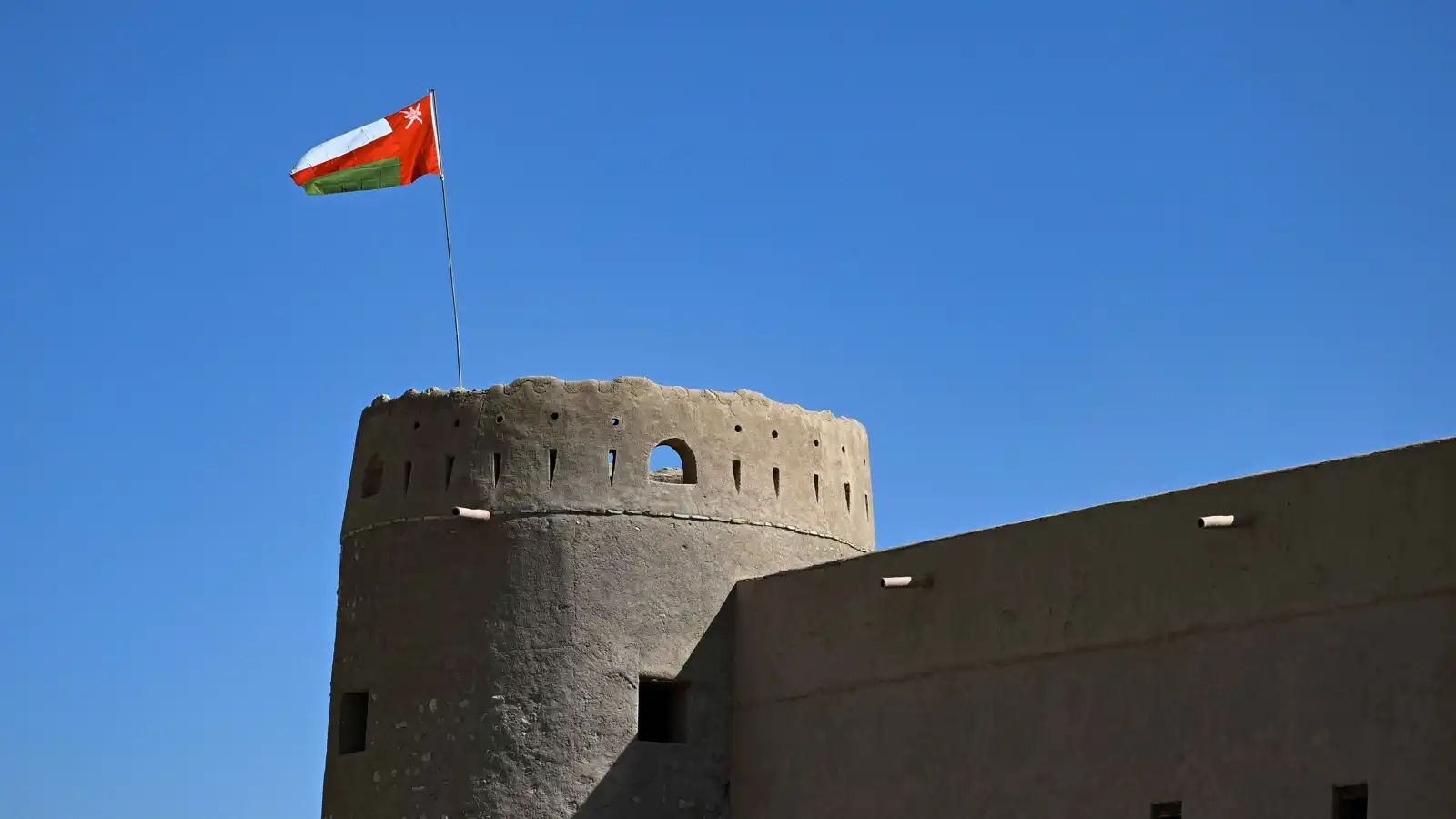 علم سلطنة عُمان يرفرف فوق قلعة في مسقط، يوم 22 نوفمبر 2025