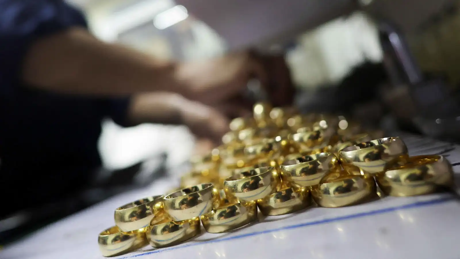 ورشة لتصنيع المشغولات الذهبية في شارع الصاغة بالعاصمة المصرية القاهرة، 14 يناير 2024.