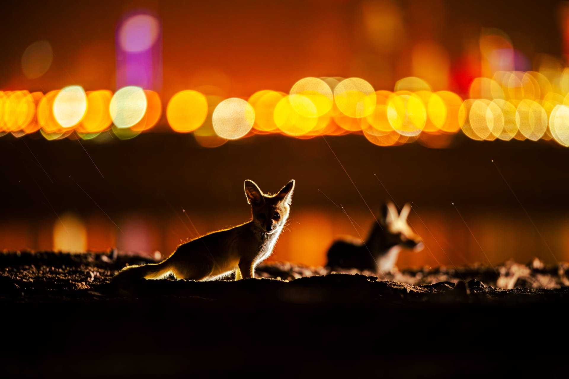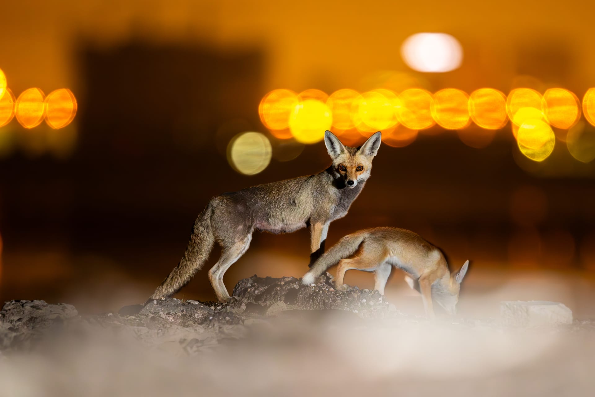 خلال توثيقها برزت الثعالب بشكلٍ مميز مع بريق أضواء المدينة في الخلفية، ما شكل تناقضًا غريبًا وحميمًا بين الطبيعة والحضارة.