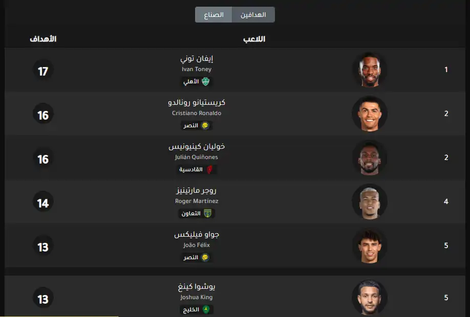 انفرد إيفان توني، مهاجم الأهلي السعودي، بصدارة جدول ترتيب هدافي دوري روشن السعودي، بعد أن تجاوز الأسطورة البرتغالي كريستيانو رونالدو، قائد النصر.