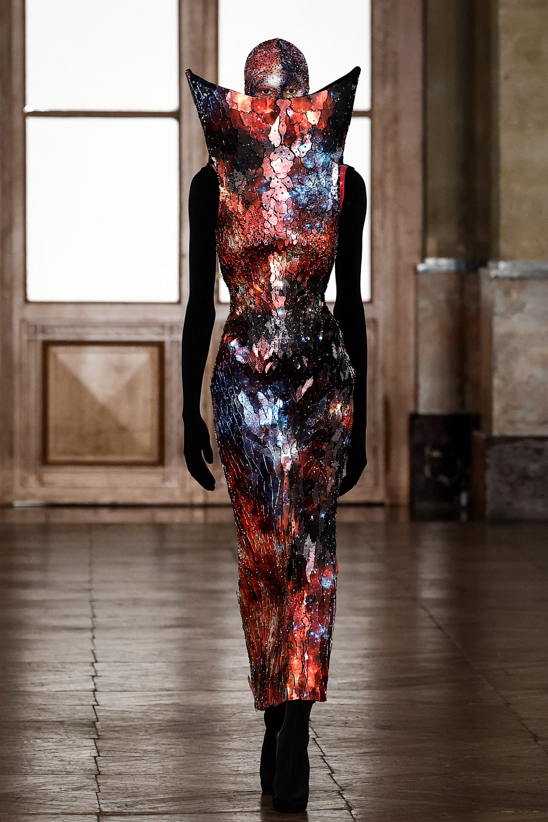 بدلاً من رؤية عارضة واحدة تسير على المنصّة، شهد العرض عارضتين متشابكتين بفساتينهما، حيث تداخلت خيوط الفستان الزهري مع الفستان الأحمر، وسارت العارضتان معًا على خطى واحدة.