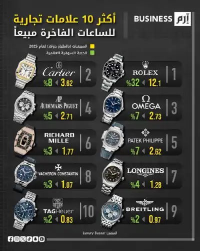 «رولكس» السويسرية تتصدر مبيعات الساعات الفاخرة في 2025